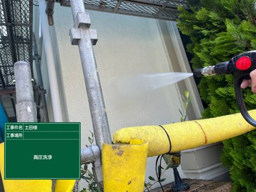 高圧洗浄機で、屋根や外壁の汚れやコケをキレイに落としております。