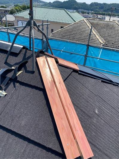 • 屋根カバー工法 施工中