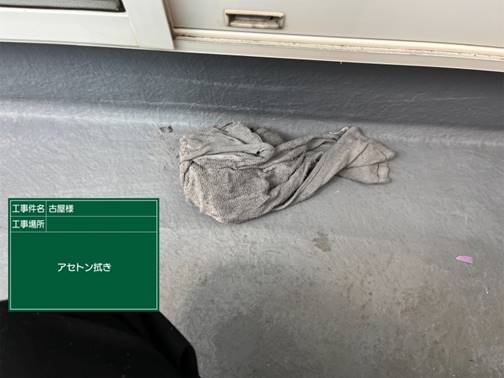 • ベランダ床 アセトン拭き(下地処理)