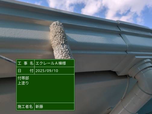 破風板に付帯塗料を塗装しております。