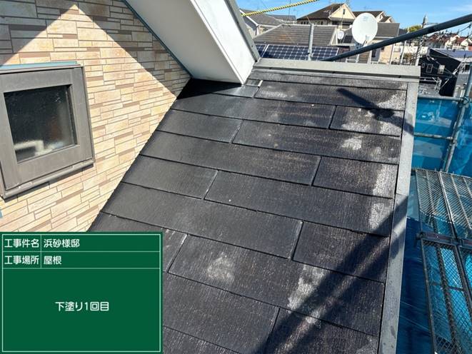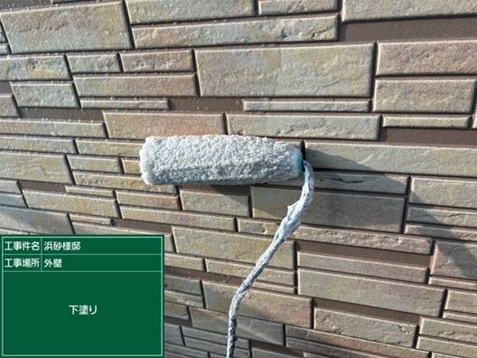 下塗り材を2度に塗装することで下地をしっかり整えます。
