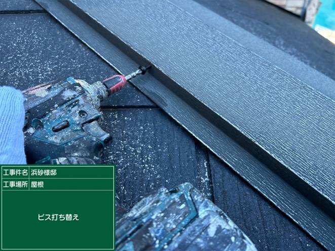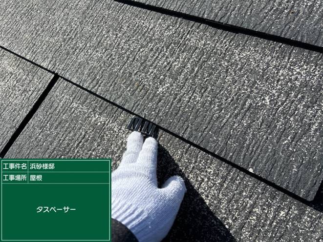 タスペーサーを設置し、屋根の屋根の間に隙間を開けております。