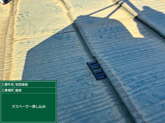 タスペーサーを設置し、屋根の屋根の間に隙間を開けております。