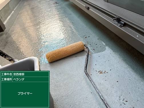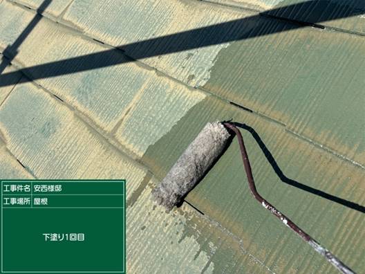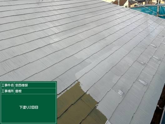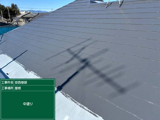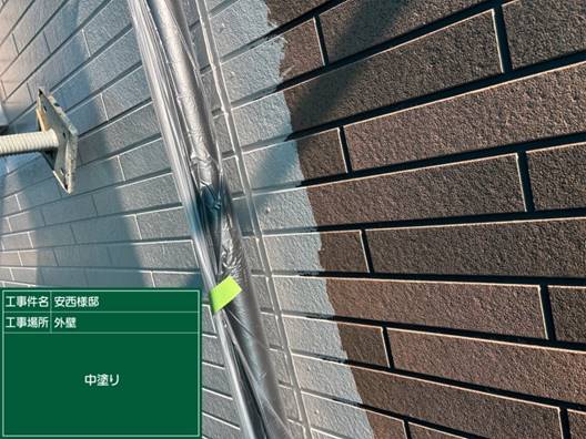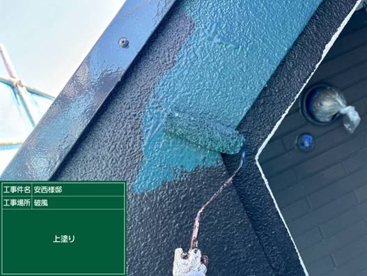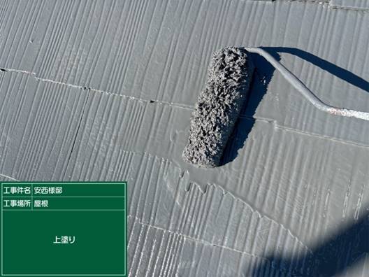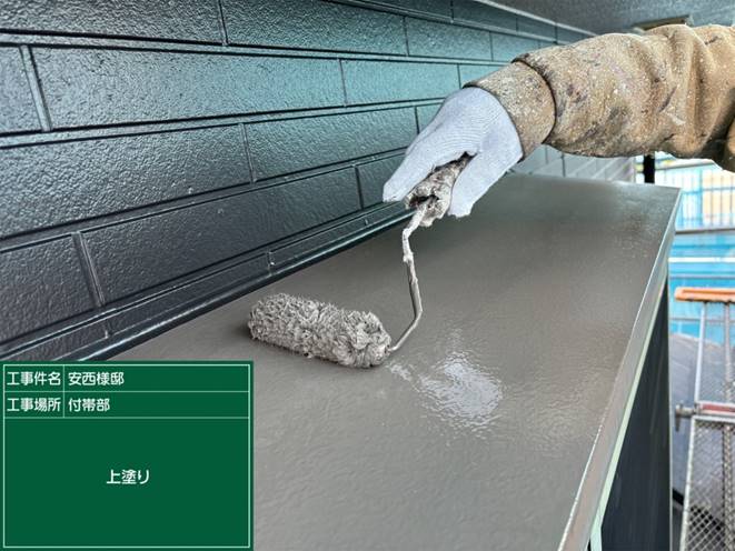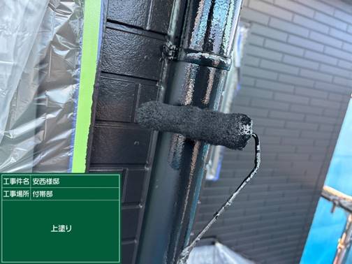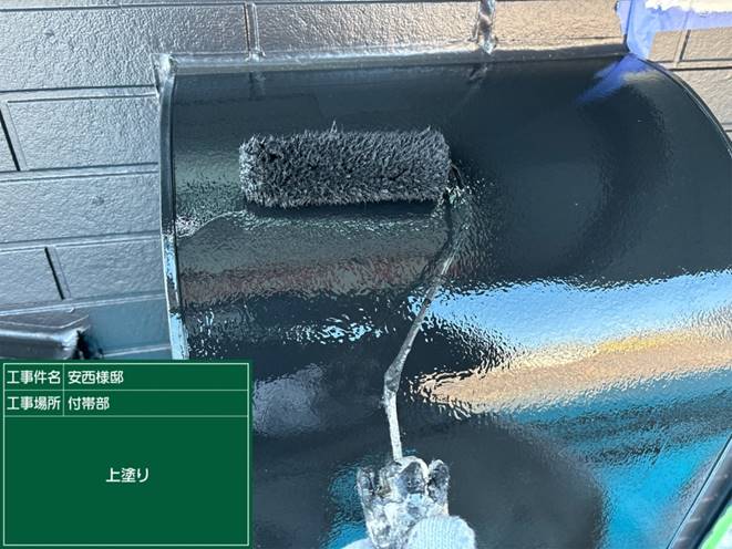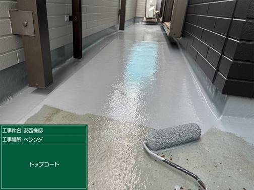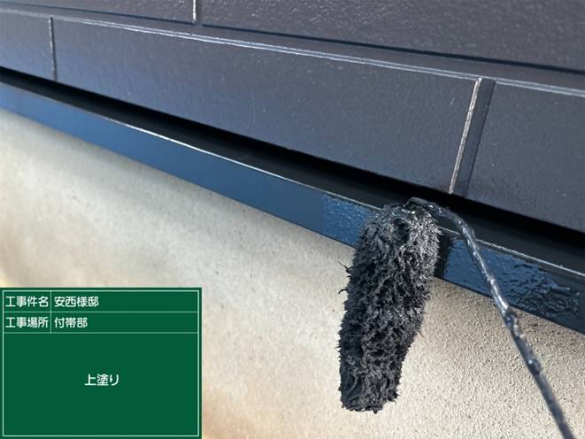 中塗り材と同じ塗料ですが、厚みを持たせるのと同時に塗り残しが無いようしっかりと塗装いたします。