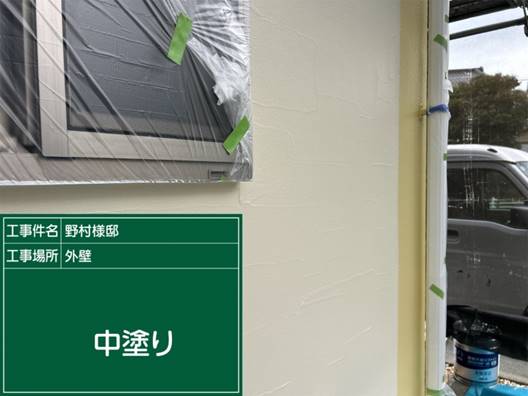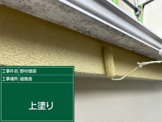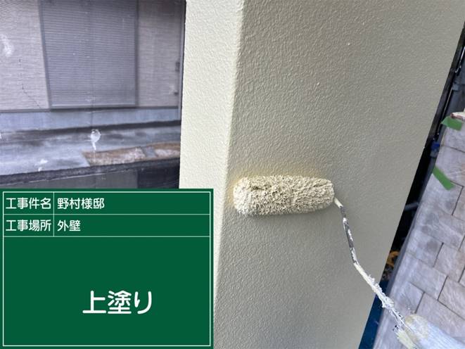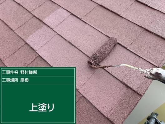 中塗り材と同じ塗料ですが、厚みを持たせるのと同時に塗り残しが無いようしっかりと塗装いたします。