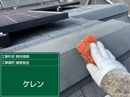 雨樋をケレン作業→下塗り→上塗りの3工程で塗装をしております。