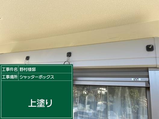 シャッターBOXをサビ止め→中塗り→上塗りの3回に分けて塗装しております。
